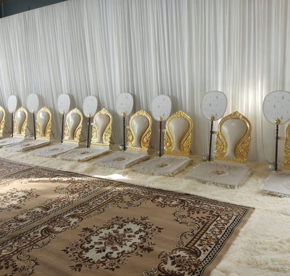 • พรมบนเวทีสีขาว หรือ ผ้าคลุมสีครีม หรือ สีทอง สวยงาม
